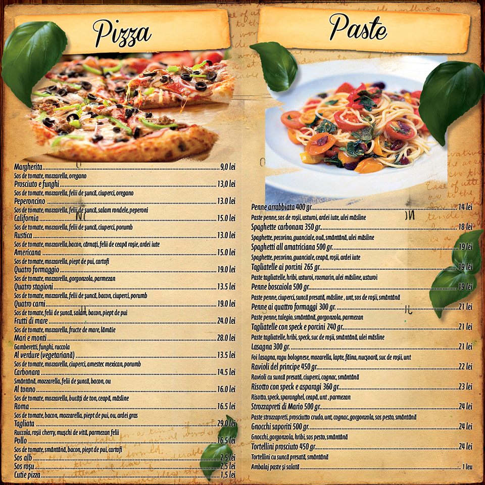 Si nu uitati de toate sortimentele delicioase de pizza.