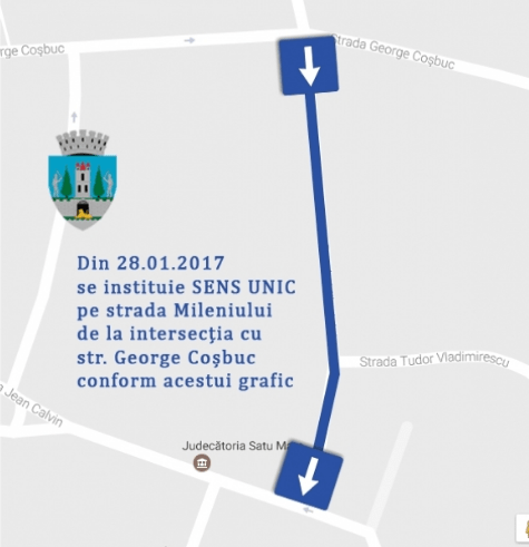 Aducem la cunoştinţă publică faptul că începând cu data de 28.01.2017 se va institui sens unic pe următoarele străzi din municipiul Satu Mare astfel: